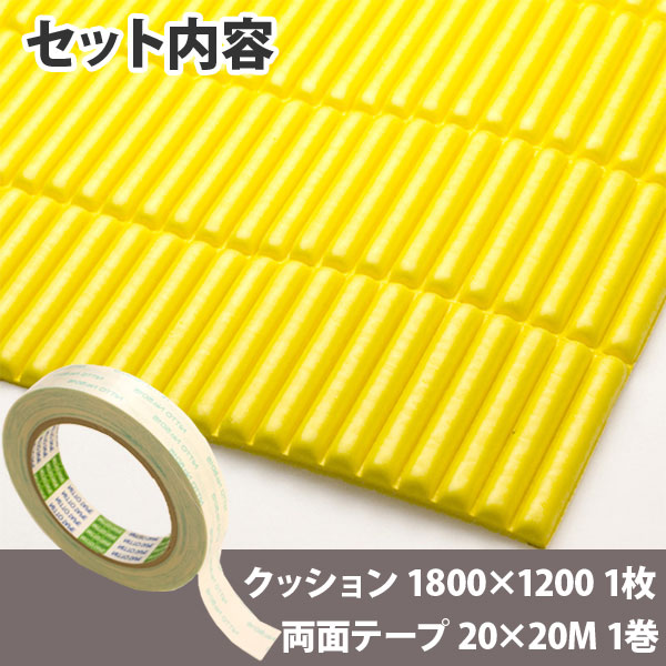 【両面テープ1本+クッション1枚のセット】安心クッション波型スリム〈イエロー〉Lサイズ 屋内用両面テープセット【カーボーイ】