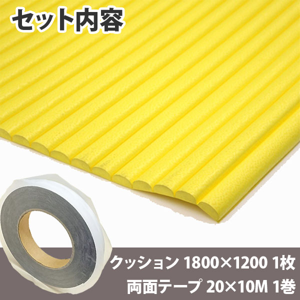 【両面テープ1本+クッション1枚のセット】安心クッション波型〈イエロー〉Lサイズ 屋外用両面テープセット【カーボーイ】