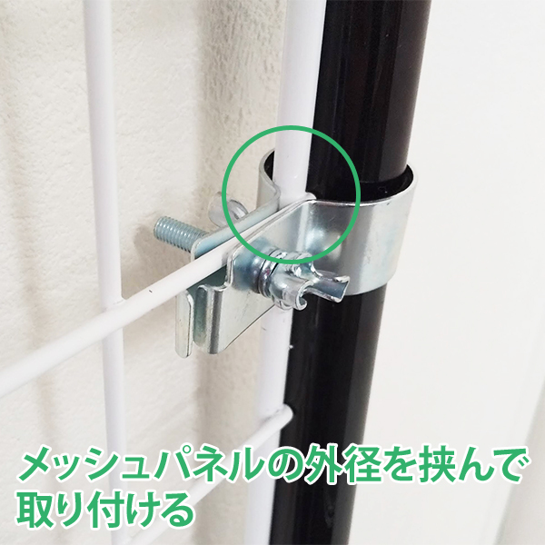 メッシュパネル(ワイヤーネット)を伸縮ポールに掛けるときに使用する金具