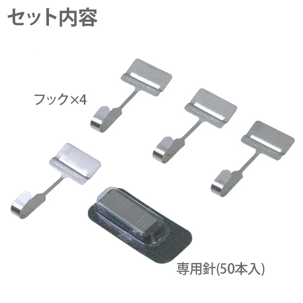 セット内容フック:4個、専用針:1個(50本入)、説明書:1枚
