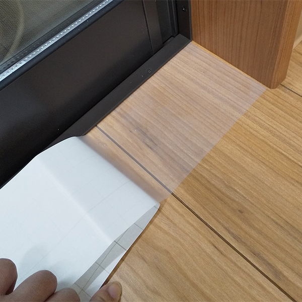 ※シートとフローリングの間にゴミなどが付着すると、ハガレの原因になります。フローリングの汚れ、水分・ホコリを丁寧に拭き取ってからお貼りください。