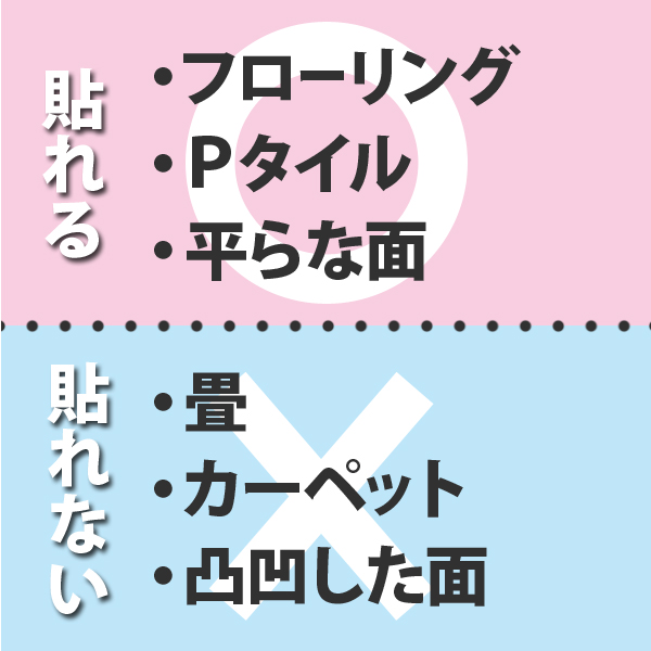 使用上の注意※床の形状・状態により、シートがしっかり接着しない場合があります。