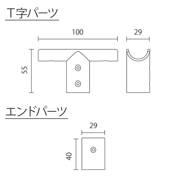 セット内容T字パーツ×1/エンドパーツ×1/ネジ(φ3×10mm)6本